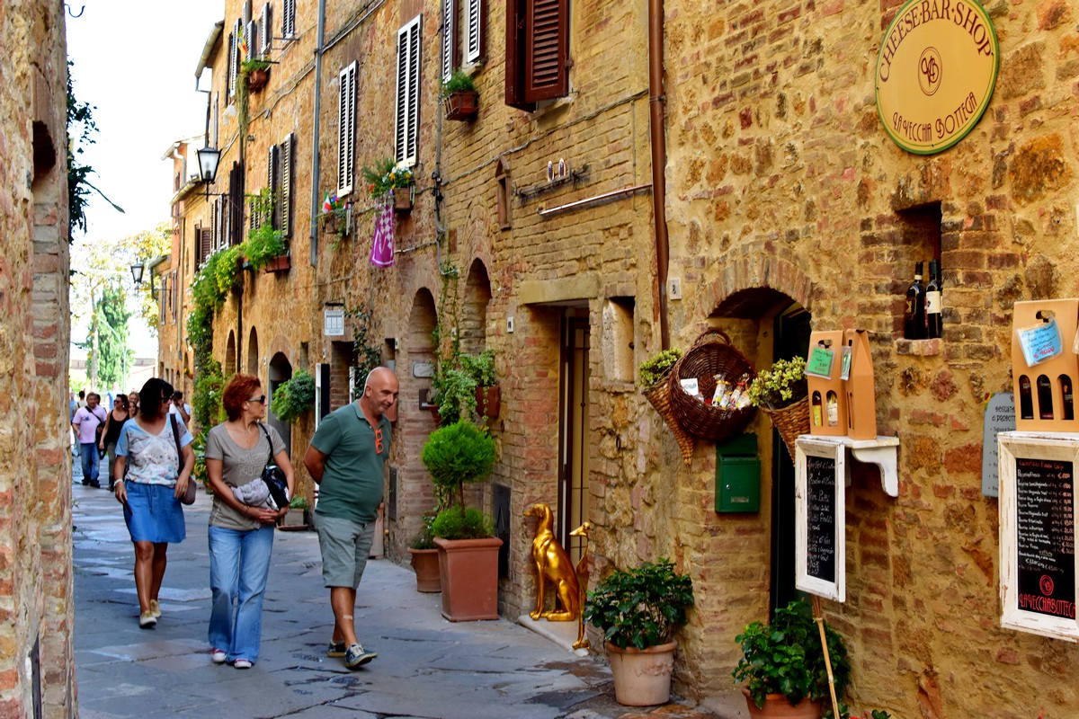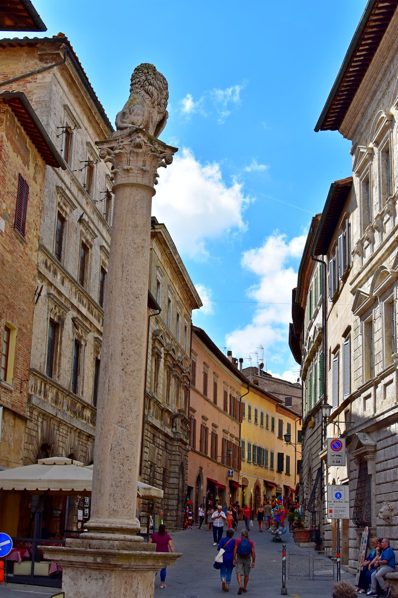 En Montepulciano callejuelas estrechas, arcos gigantes y altos edificios te dan la bienvenida, y el lugar también es conocida por el bueno vino que aquí se produce, se dice que entre Montepulciano y Montalcino está el mejor vino Toscano, uno de los mejores vinos de todo el planeta, respecto a los quesos se cree que los mejores son los de su vecina Pienza de donde proveníamos.