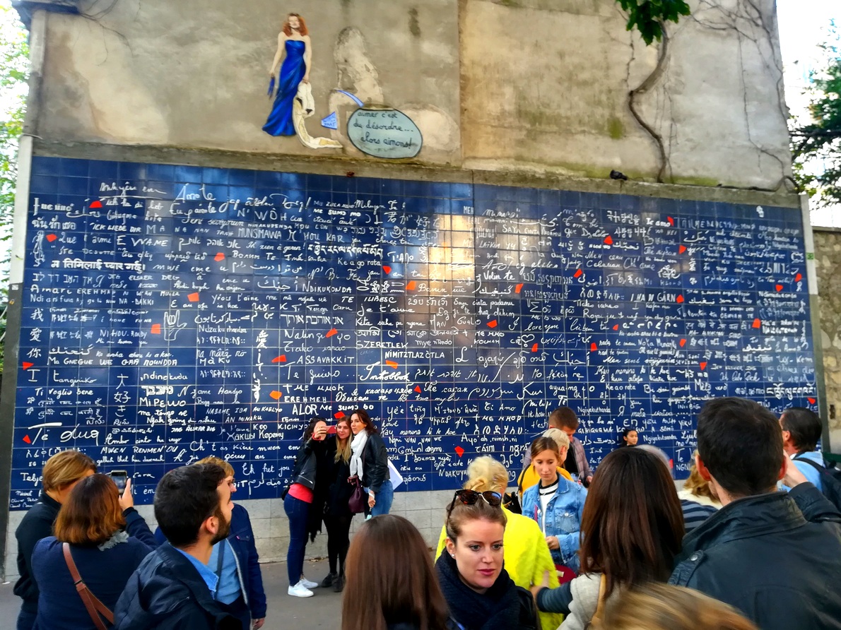 Descubrimos la magia tras comenzar nuestro paseo por calles como la Rue du Chevalier de la Barre, la plaza de los artistas llamada Place du Tertre, o tras darnos de bruces con el conocido como muro del amor o Muro “Je T´aime”, un lugar que como no podía ser de otra manera, rebosa tanto amor que dicen allí puedes encontrar esta palabra escrita en todos los idiomas del mundo.